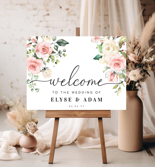Abbieville Floral Pink | Printable Welcome Sign Template