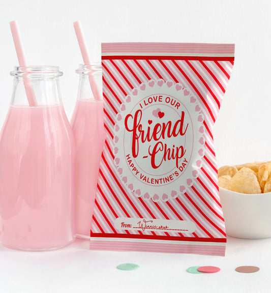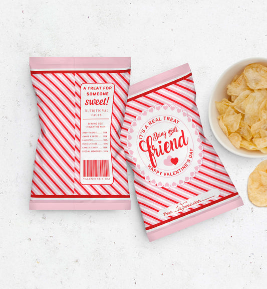 Stripe Red Pink | Printable Valentine's Day Friend Chip Bag Favour Template
