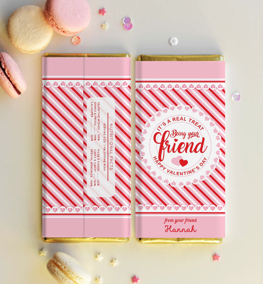Stripe Red Pink | Printable Valentine's Day Chocolate Bar Wrapper Template