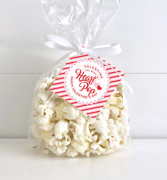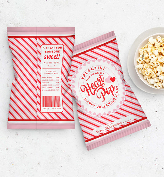 Stripe Red Pink | Printable Poppin Valentine's Day Popcorn Bag Template