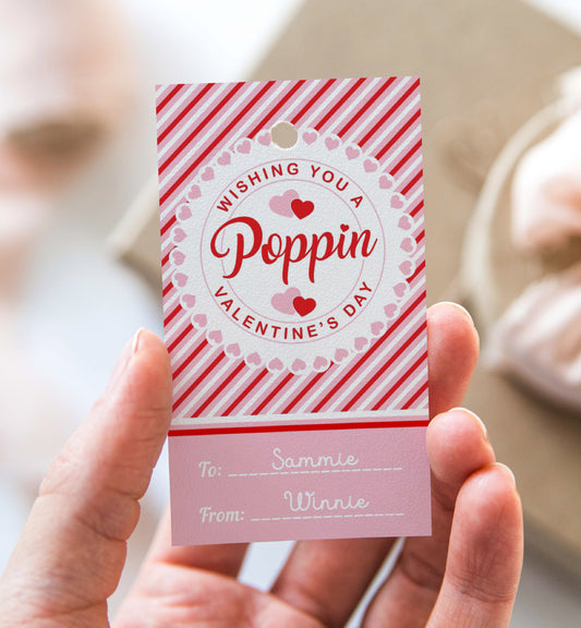 Stripe Red Pink | Printable Poppin Valentine Tag Template