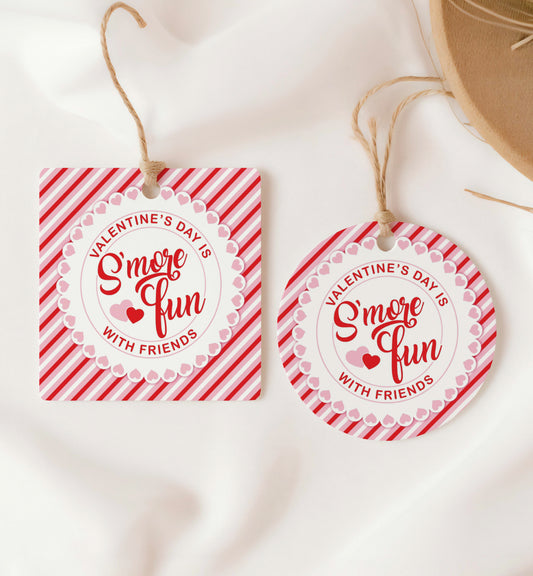 Stripe Red Pink | Printable S'More Fun Valentine Tag Template