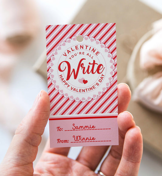 Stripe Red Pink | Printable You're All Write Valentine Tag Template