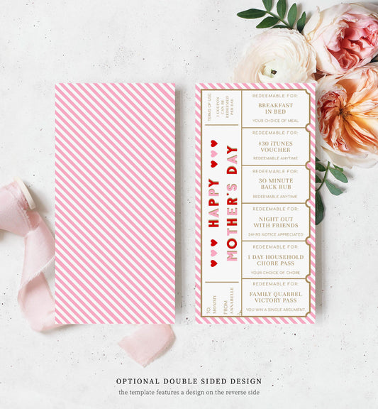 Stripe Red Pink | Printable Mother's Day Custom Love Coupons