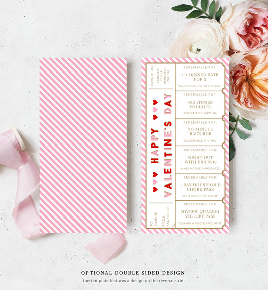 Stripe Red Pink | Printable Valentine's Day Custom Love Coupons