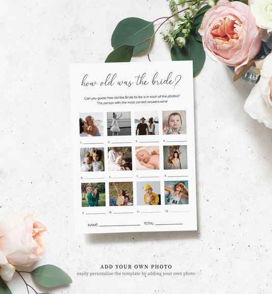 Quinn Script White | Printable How Old Was The Bride Photo Bridal Shower Game