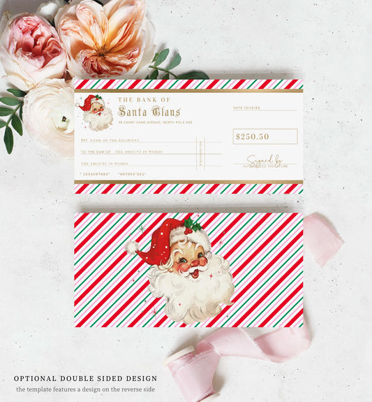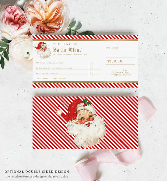 Stripe Red | Printable Christmas Santa Cheque Gift Voucher Template