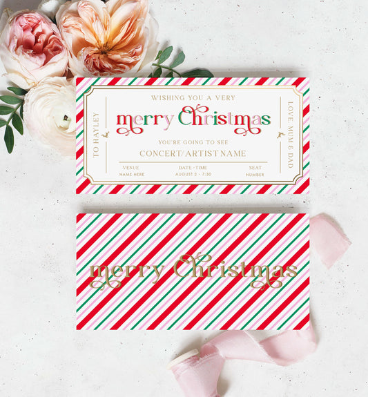 Stripe Red Green | Printable Christmas Concert Gift Voucher Template