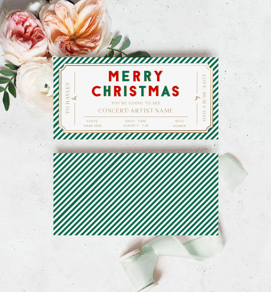 Stripe Green Red | Printable Christmas Concert Gift Voucher Template
