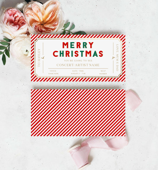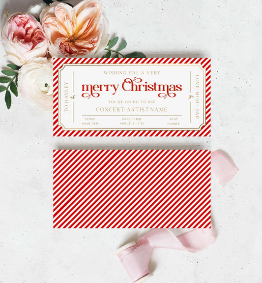 Stripe Red White | Printable Christmas Concert Gift Voucher Template