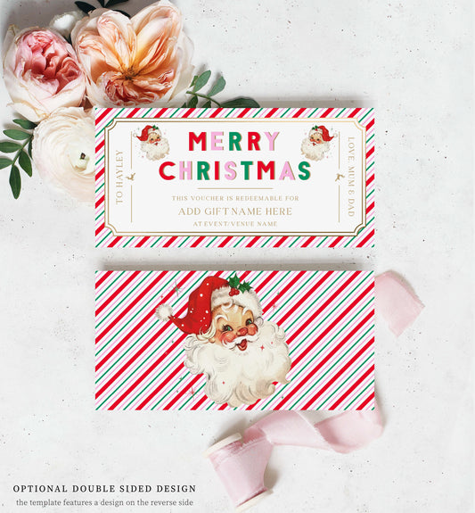 Stripe Pink Multi | Printable Christmas Santa Cheque Gift Voucher Template