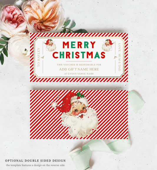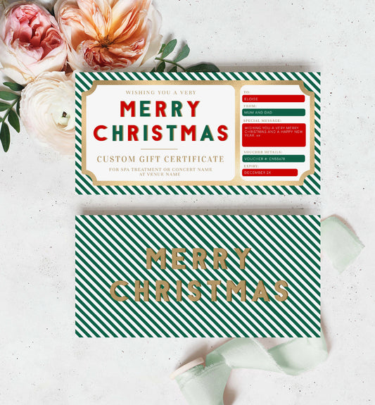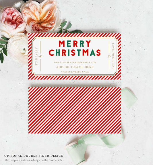 Stripe Green Red | Printable Christmas Custom Gift Voucher Template