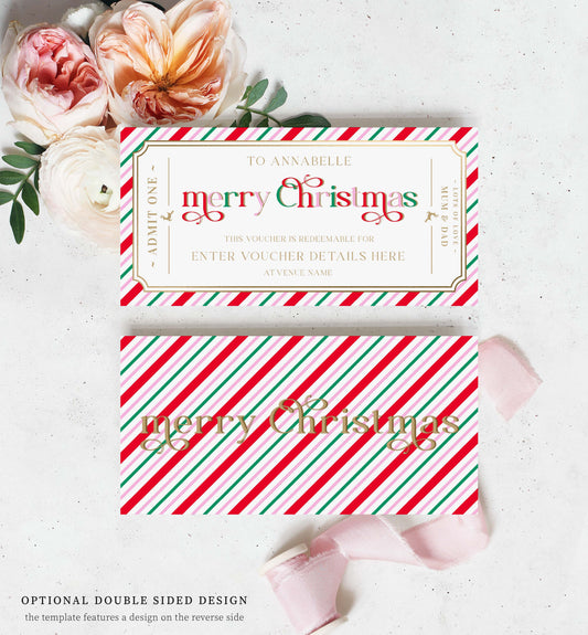 Stripe Pink Multi | Printable Christmas Custom Gift Voucher Template