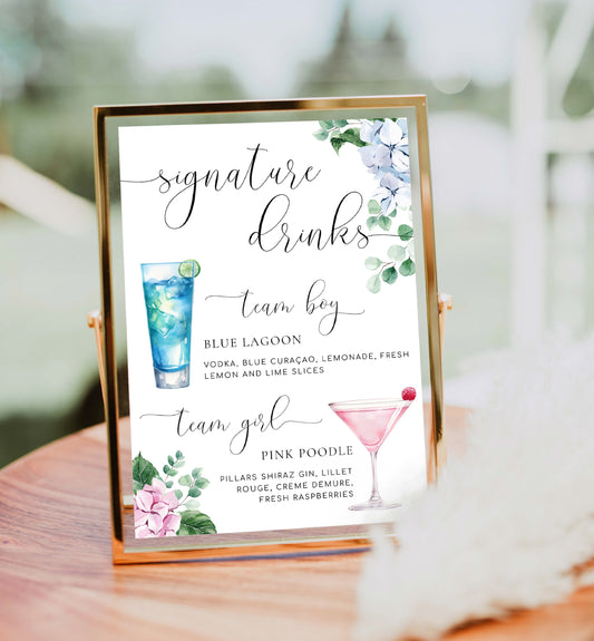 Ferras Pink Blue | Printable Team Girl Boy Drinks Sign Template