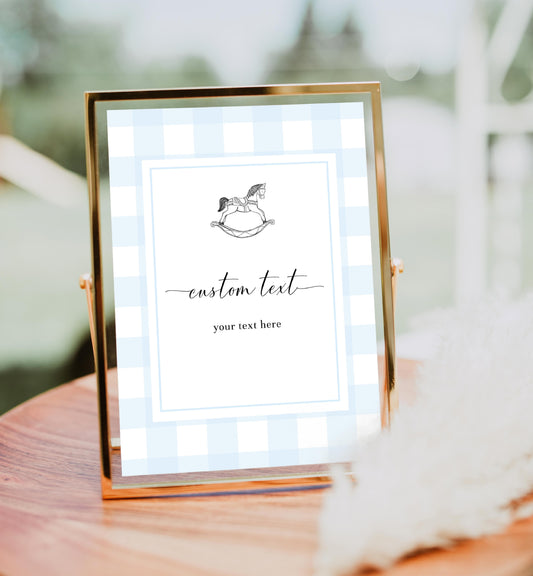 Gingham Blue Rocking Horse | Printable Custom Text Sign