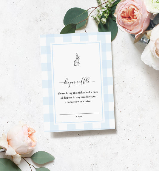 Gingham Blue Bunny | Printable Diaper Raffle Sign & Ticket Template