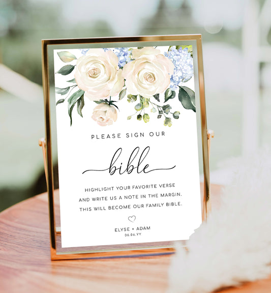 Darcy Floral White | Printable Bible Guestbook Sign Template