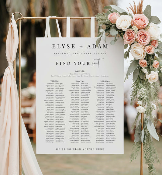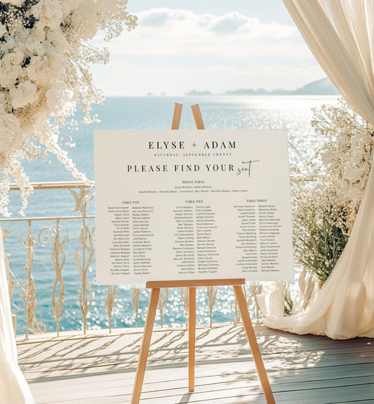 Estelle White | Printable Seating Chart - 3 Banquet Tables