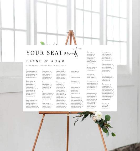 Estelle White | Printable Your Seat Awaits Alphabetical Seating Chart Template