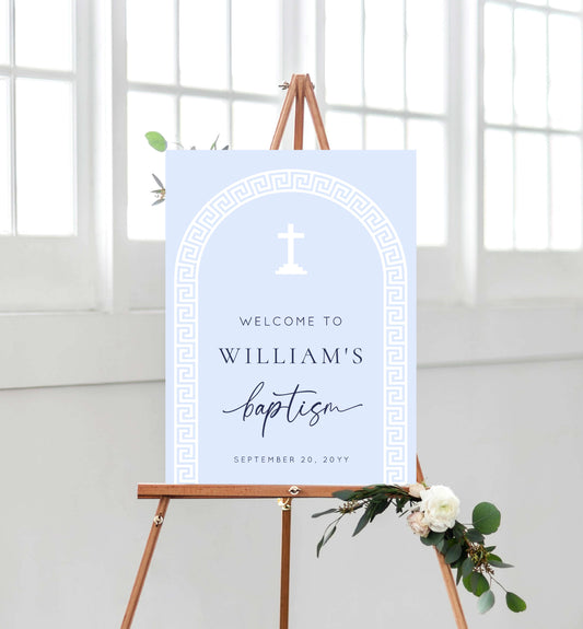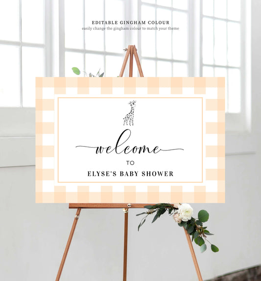 Gingham Giraffe Blue | Printable Welcome Sign Template