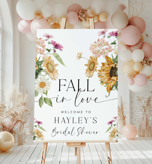 Mews Floral White | Printable Fall In Love Welcome Sign Template