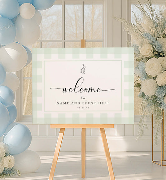 Gingham Bunny Mint Green | Printable Welcome Sign Template