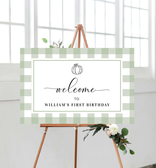 Gingham Sage Green Pumpkin | Printable Welcome Sign Template