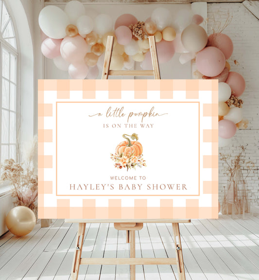 Gingham Peach Pumpkin | Printable Welcome Sign Template