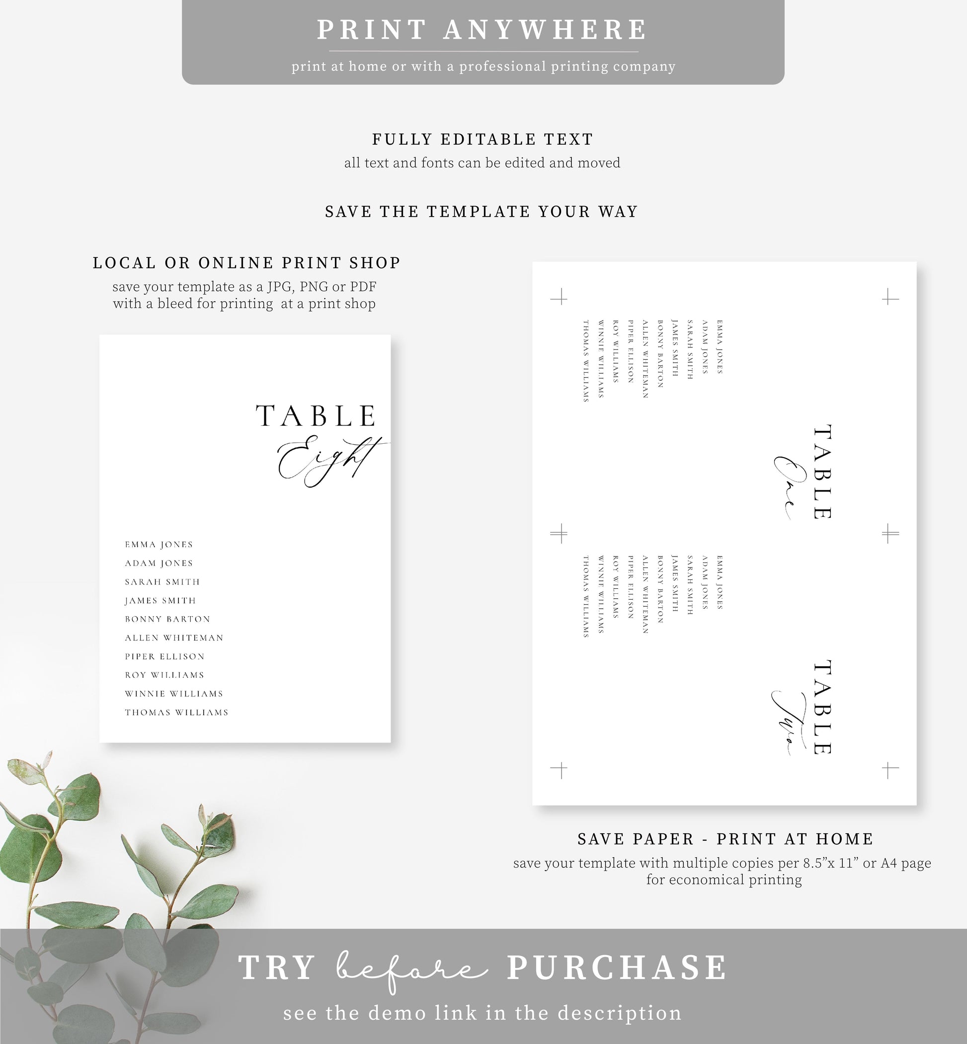 Our templates are editing using the easy-to-use Corjl online editing platform. Edit and print your template in a matter of minutes - no tech skills required!