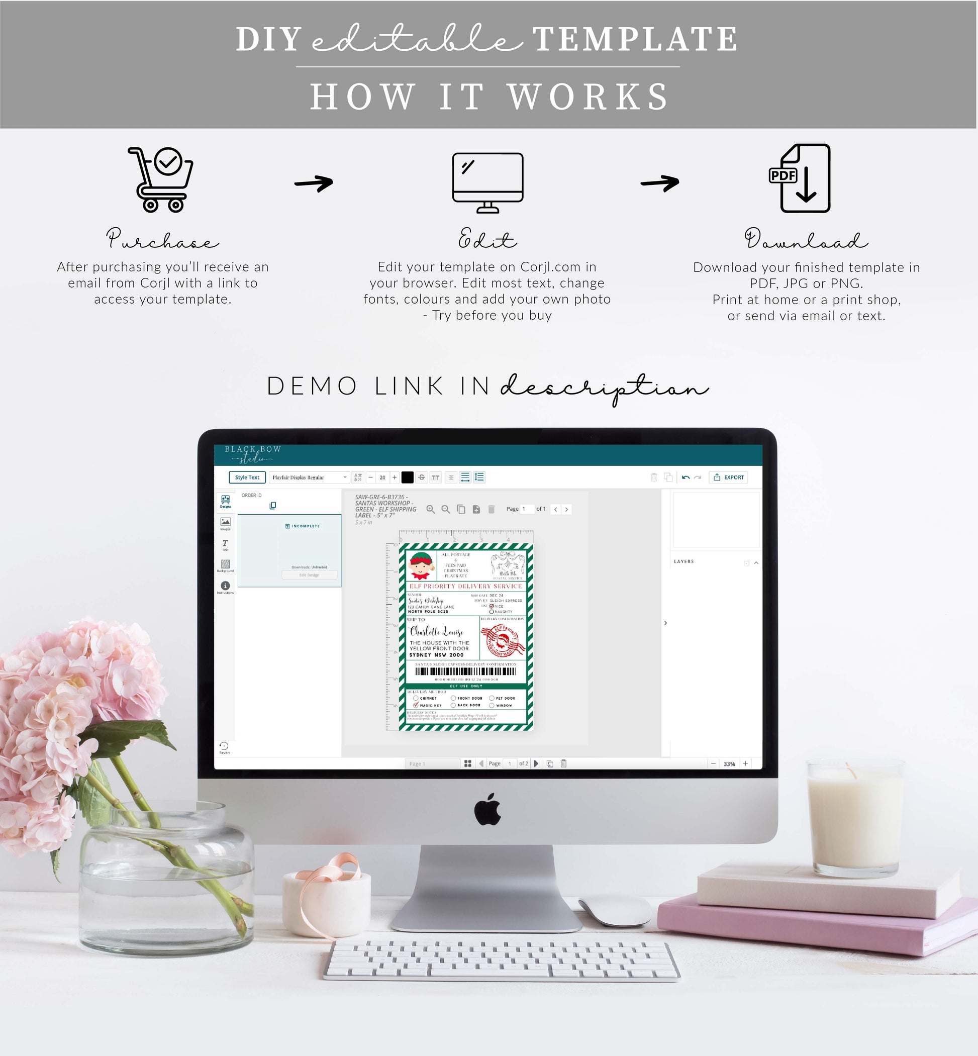 This is a do-it-yourself template editable using corjl.com – an online template editing platform that allows you to personalise your template in your internet browser – No need to install special software or download fonts. The templates are available as soon as your order has been processed.