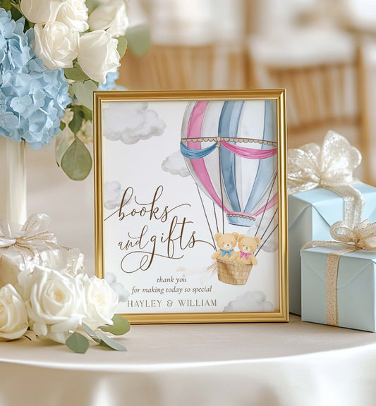 Bearly Wait Pink Blue | Printable Twins Books and Gifts Sign Template