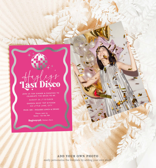 Wave Hot Pink Silver | Printable Last Disco Bachelorette Invitation Template