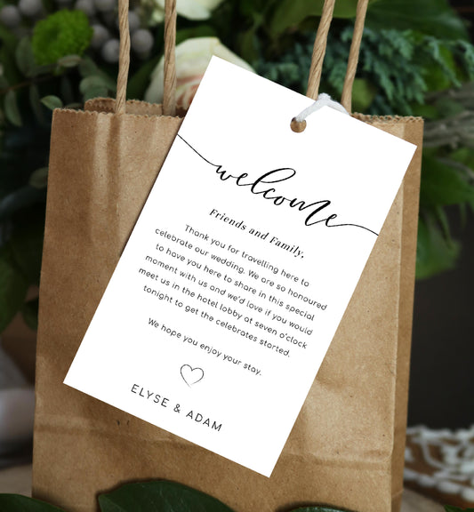 Lucas Script White | Printable Itinerary & Welcome Card Template