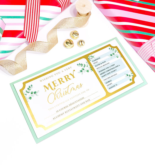Ferras Greenery Gold | Scratch-off Christmas Boarding Pass