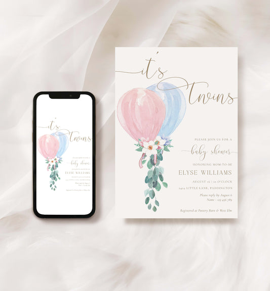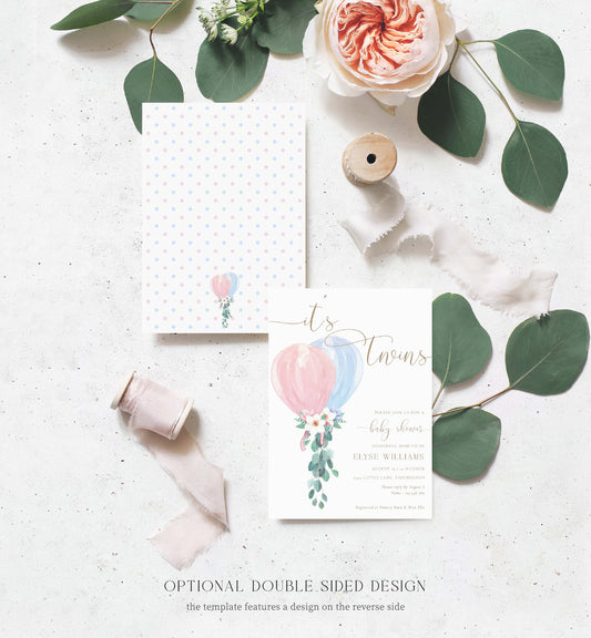Darlington Pink Blue | Printable Twins Baby Shower Invitation Suite Template
