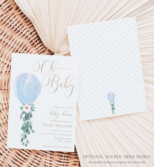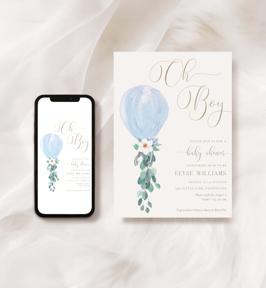 Darlington Blue | Printable Oh Boy Baby Shower Invitation Suite Template