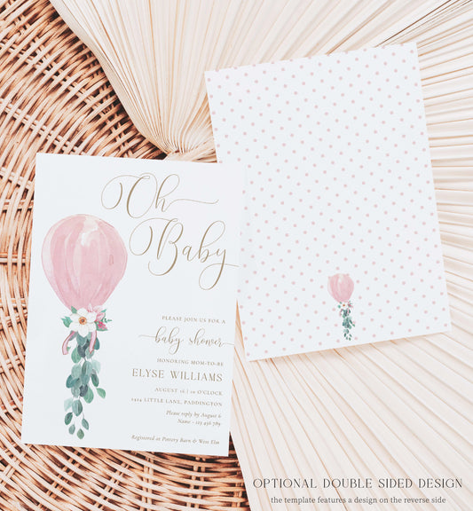 Darlington Pink | Printable Oh Baby Shower Invitation Template