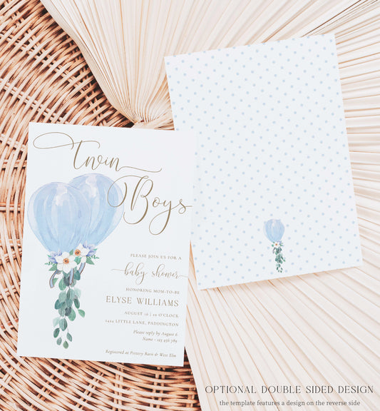 Darlington Blue | Printable Twins Baby Shower Invitation Suite Template