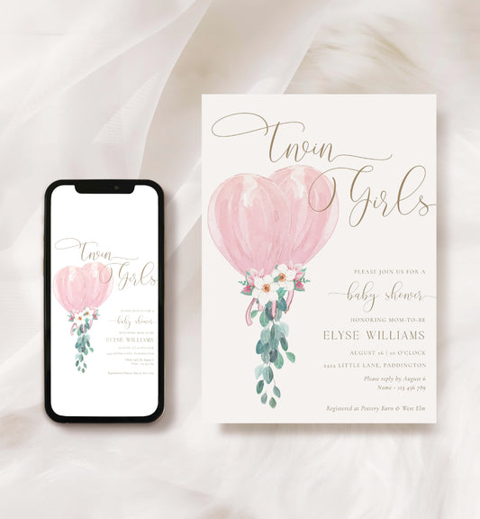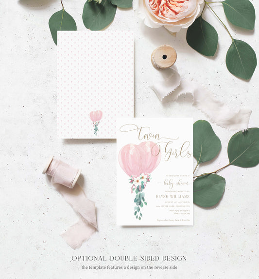 Darlington Pink | Printable Twin Girls Baby Shower Invitation Suite Template