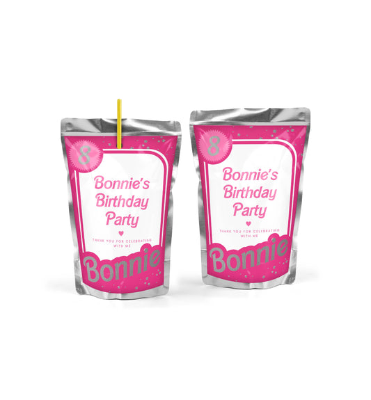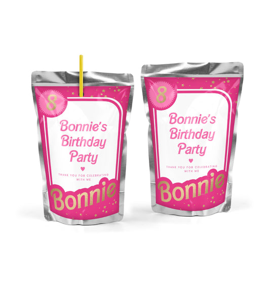Barbie Party Hot Pink Gold | Printable Juice Pouch Label Template