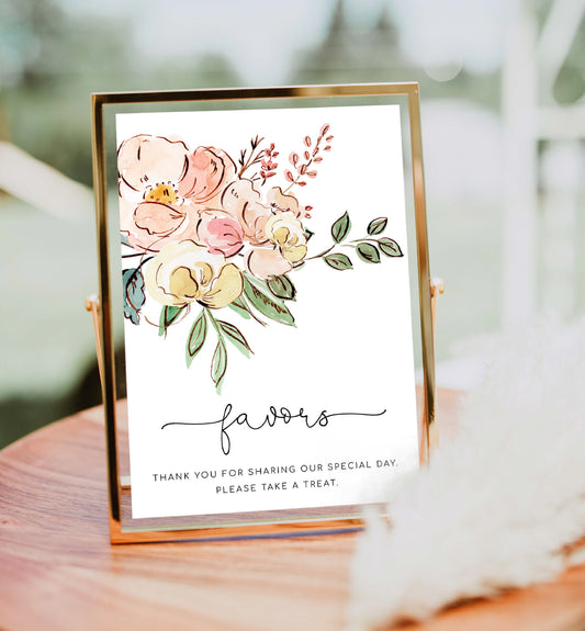 Darcy Floral Pink | Printable Favours Sign Template