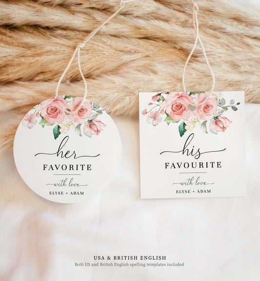 Darcy Floral Pink | Printable His & Her Favourite Favour Tag Template