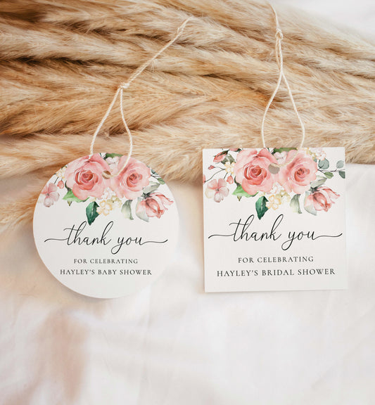 Darcy Floral Pink | Printable Thank You Favour Tags Template