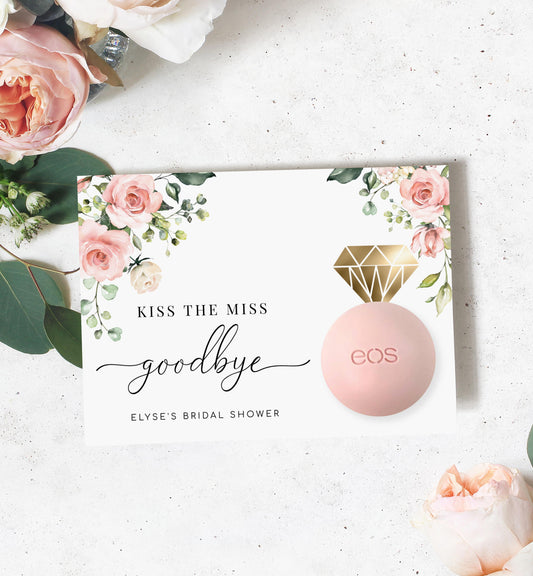 Darcy Floral Pink | Printable Kiss The Miss Favour Card Template
