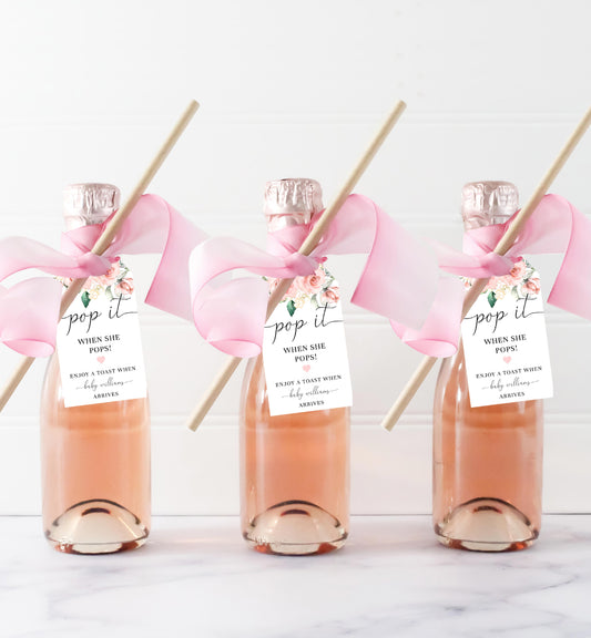 Darcy Floral Pink | Printable Pop It Favour Tags Template