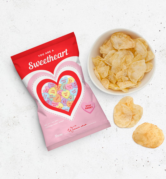 Convo Hearts White | Printable Valentine's Day Chip Bag Favour Template