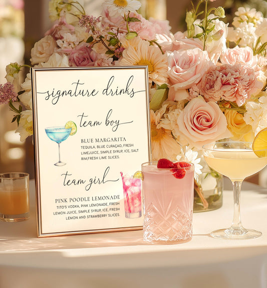 Quinn White | Printable Team Girl Boy Drinks Sign Template
