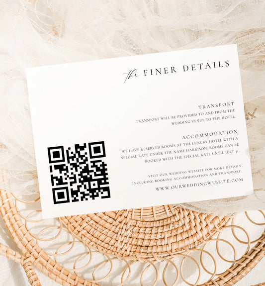 Ellesmere White | Printable QR Wedding Details Card Template