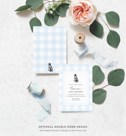 Gingham Blue Dog | Printable Birthday Invitation Template