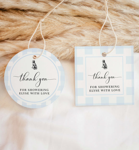 Gingham Blue Dog | Printable Thank You Favour Tag Template